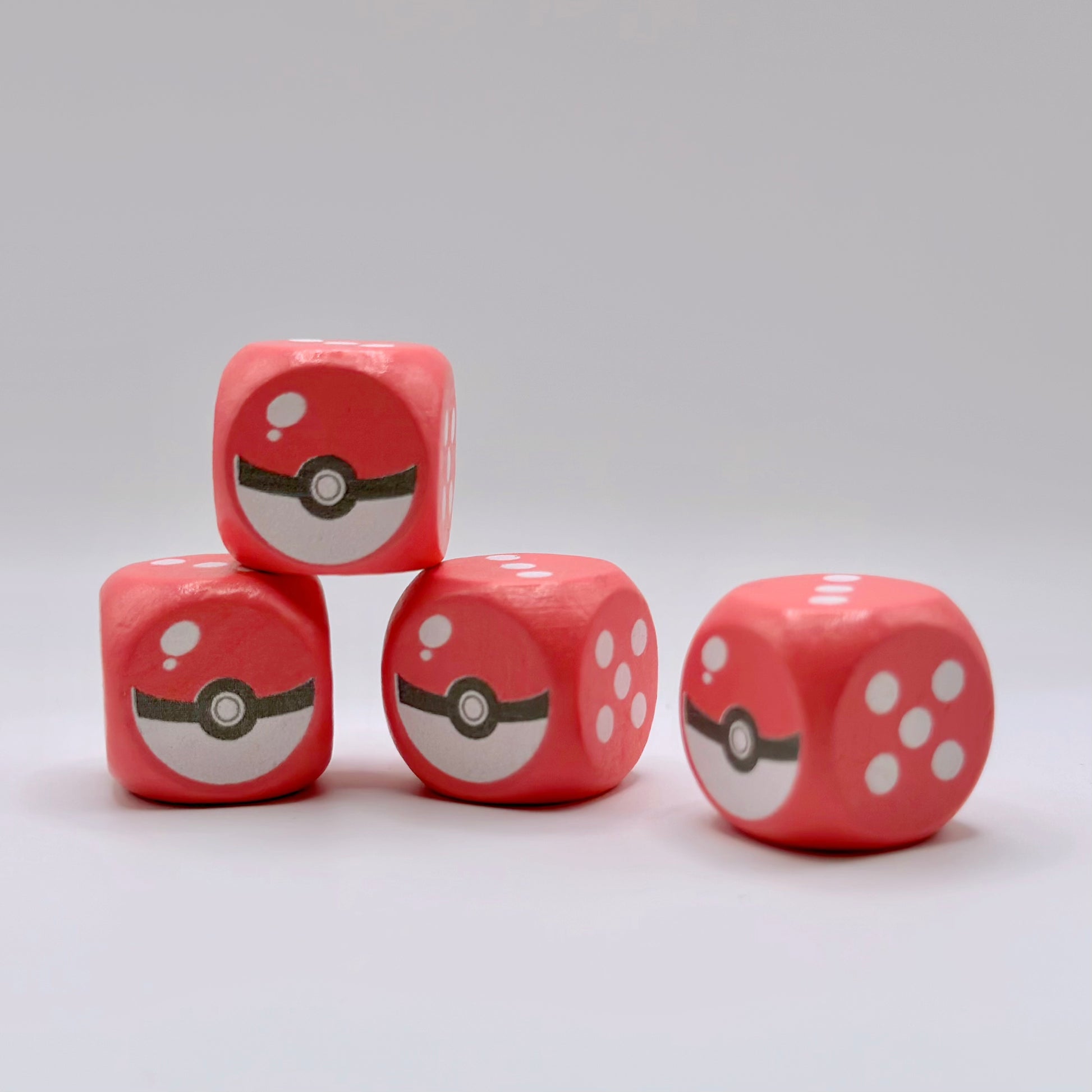 These wooden 6-sided dice feature a special custom design on the number 1.