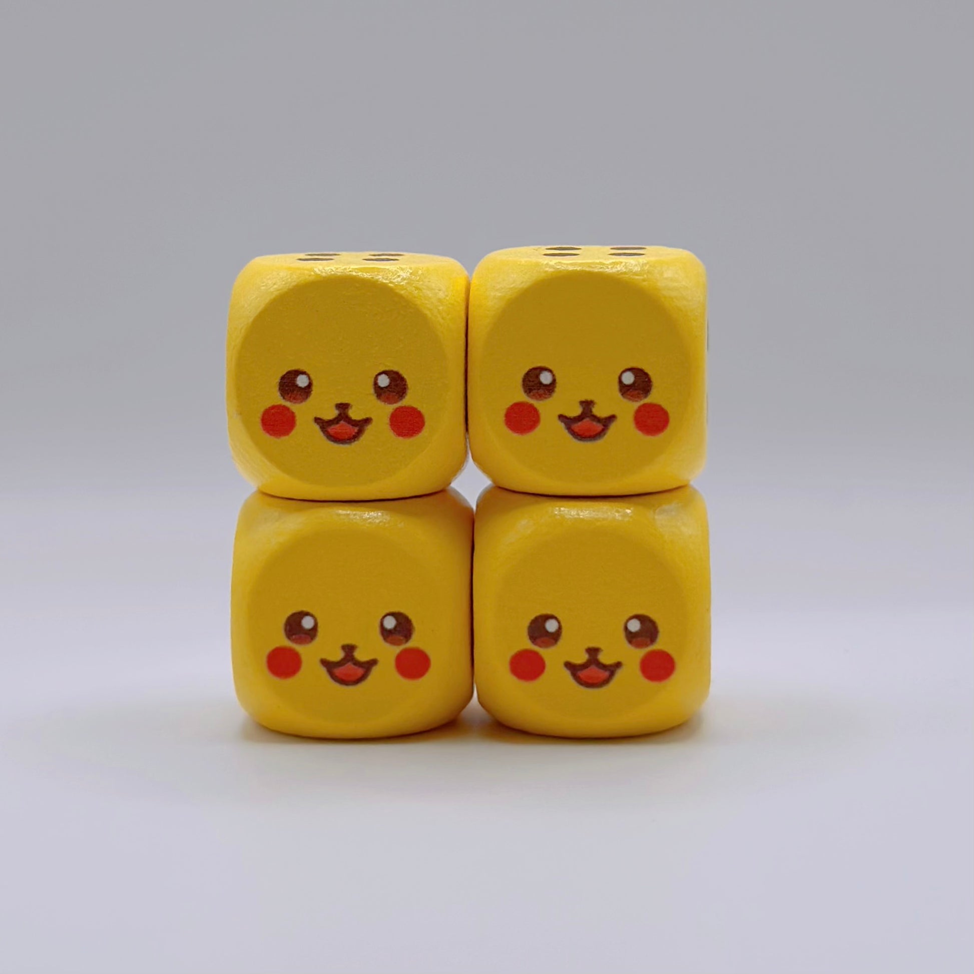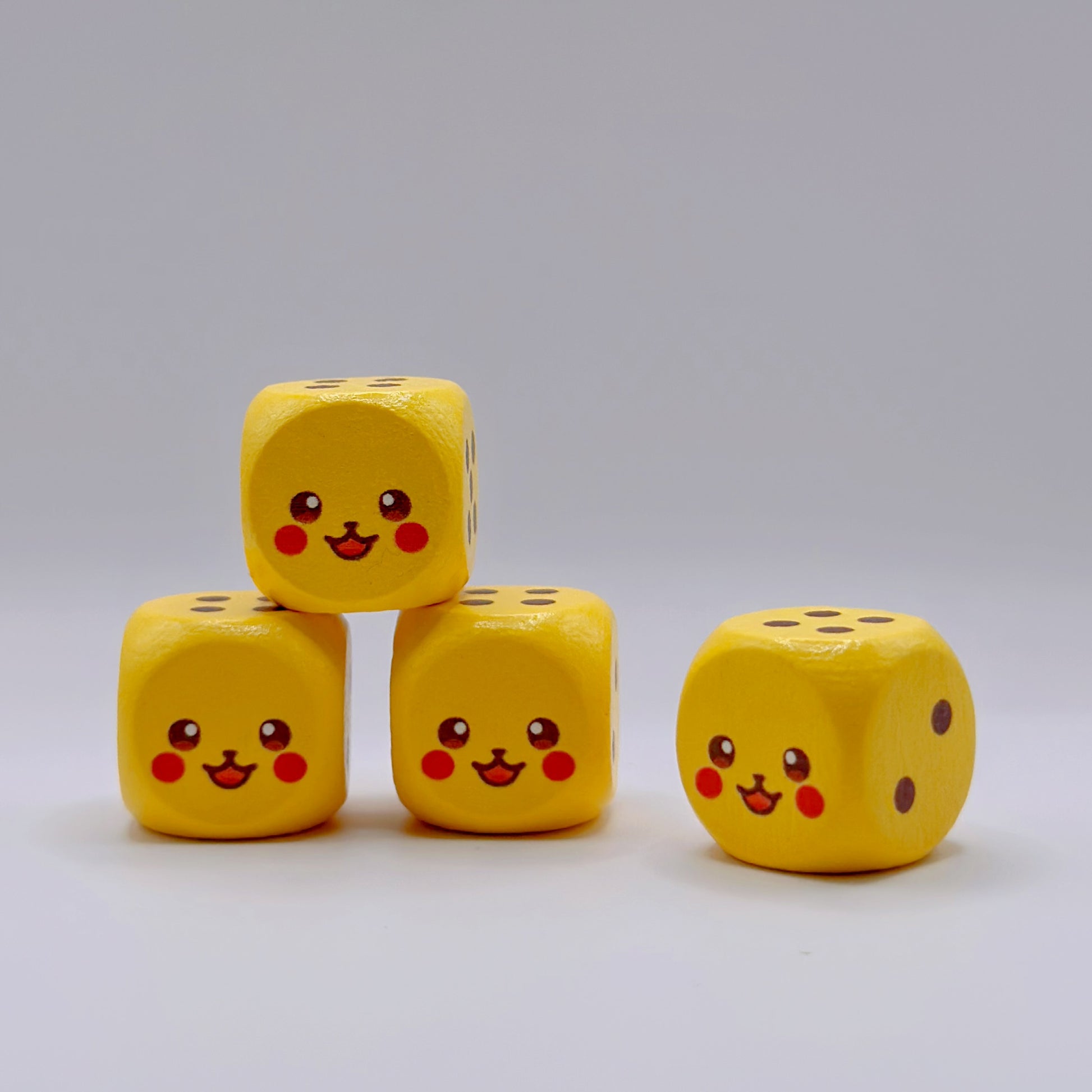 These wooden 6-sided dice feature a special custom design on the number 1.