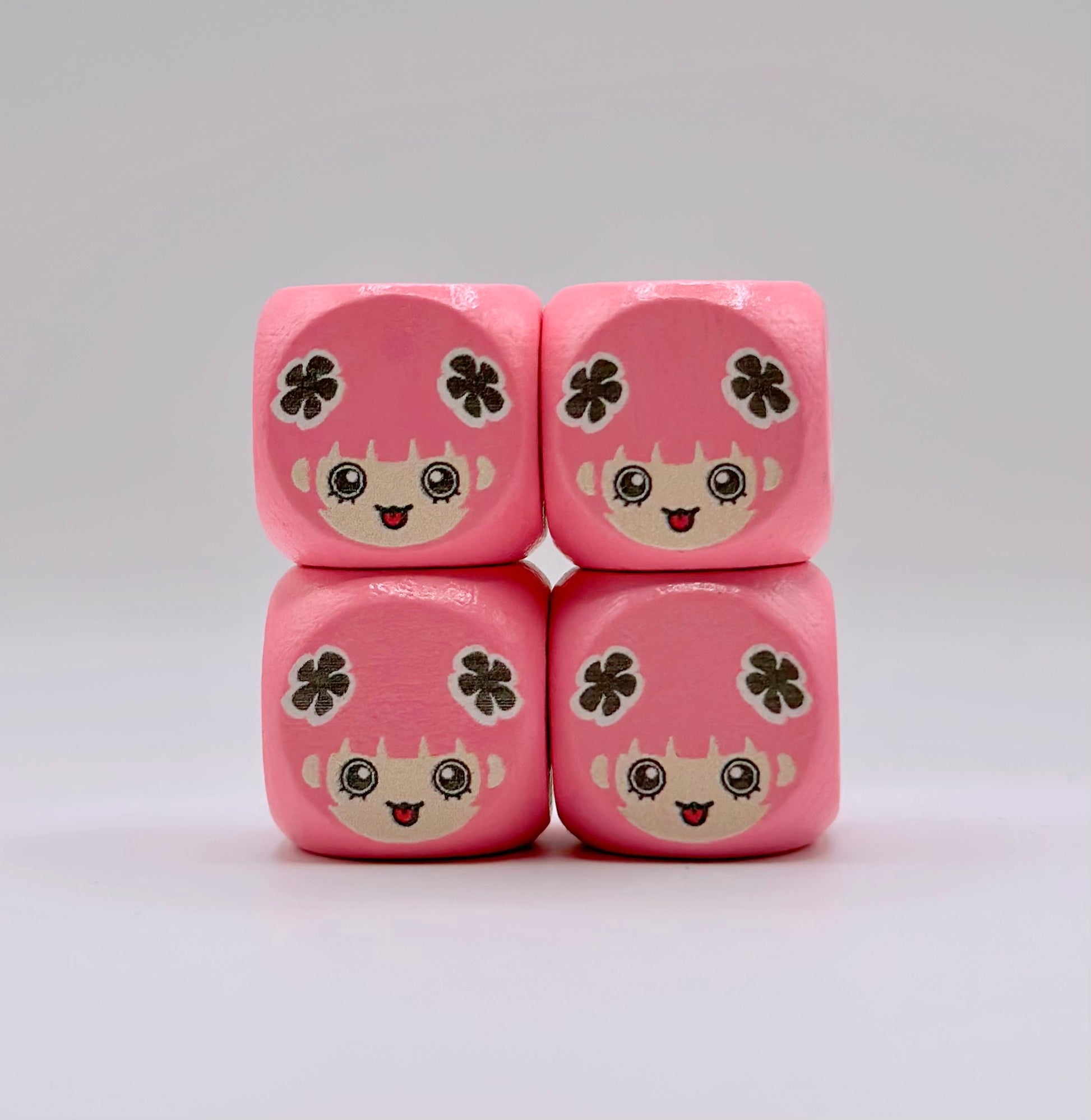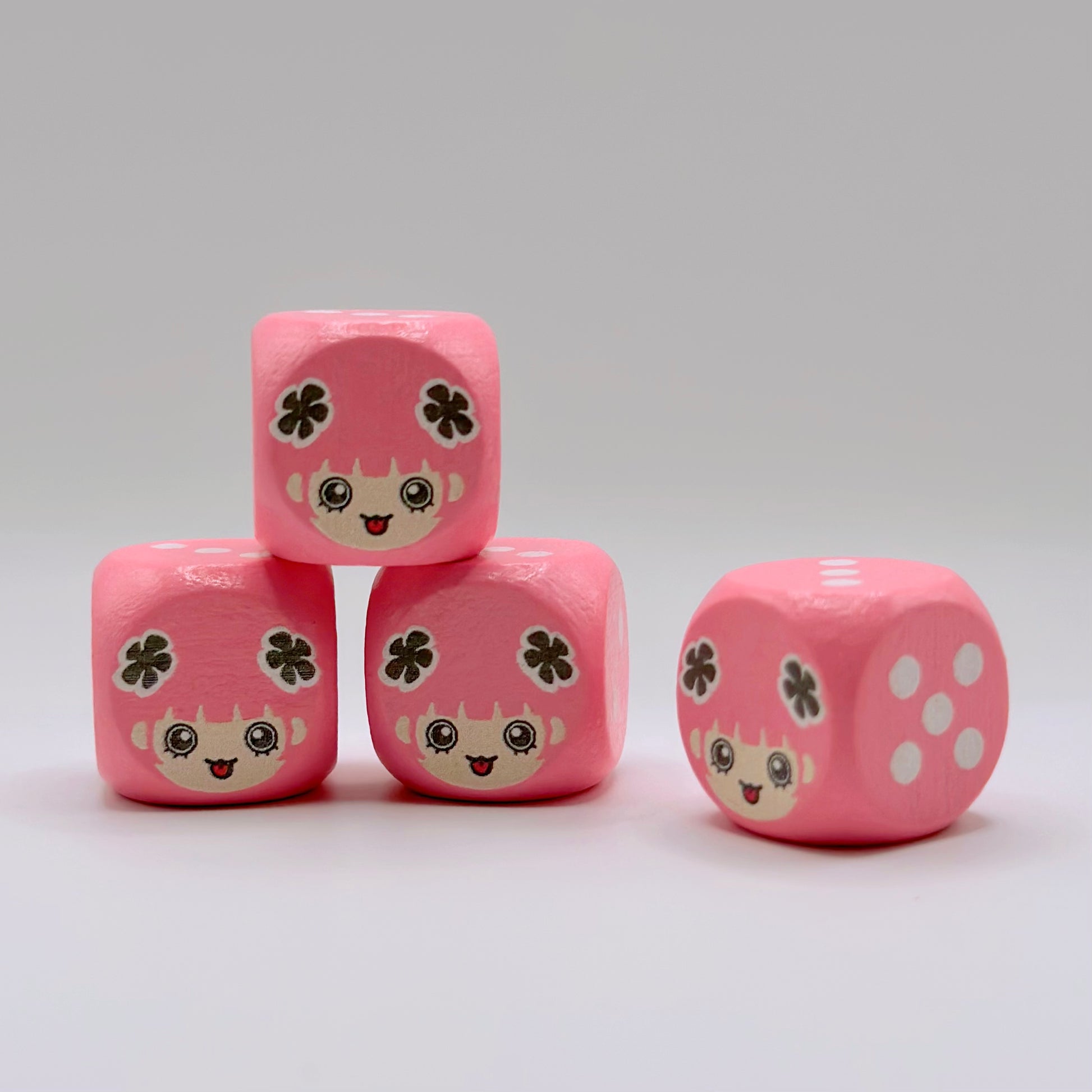 These wooden 6-sided dice feature a special custom design on the number 1.