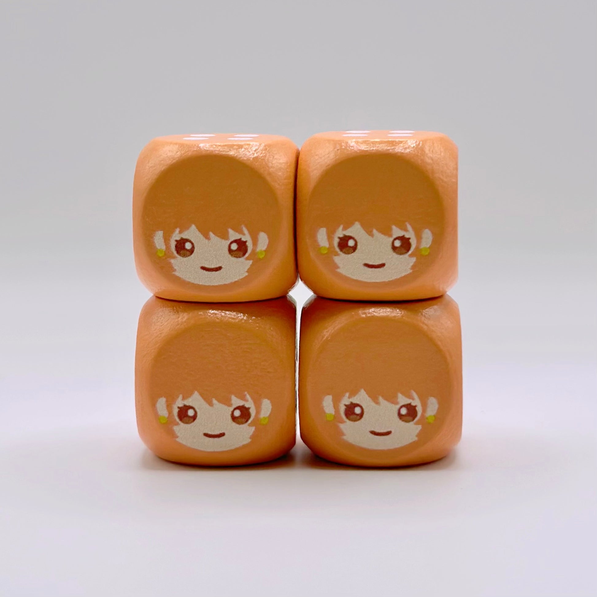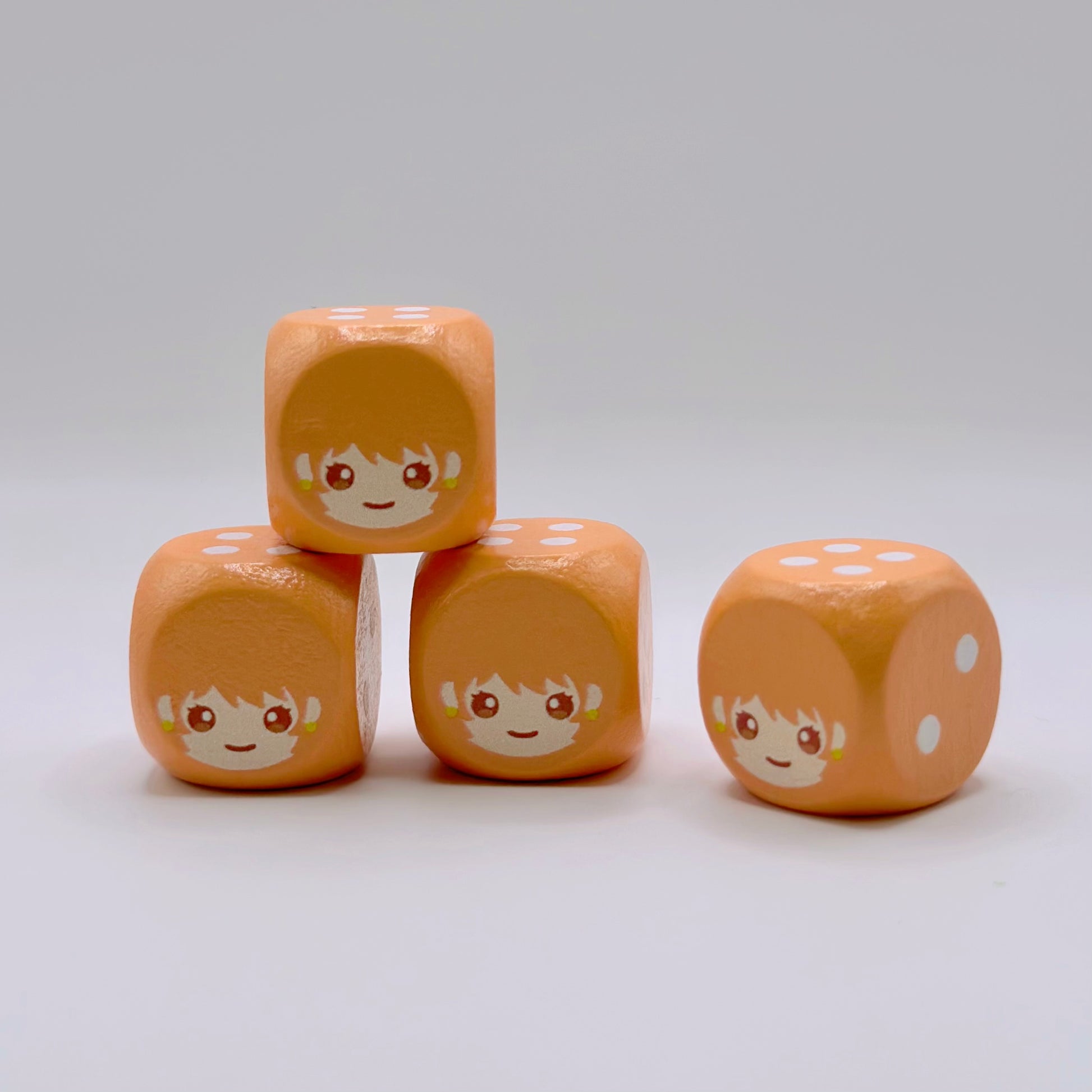 These wooden 6-sided dice feature a special custom design on the number 1.